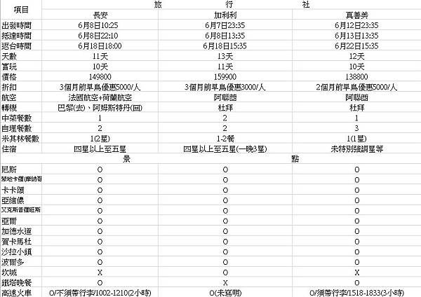 法國旅遊蜜月團比較表-長安-加利利-真善美旅行社